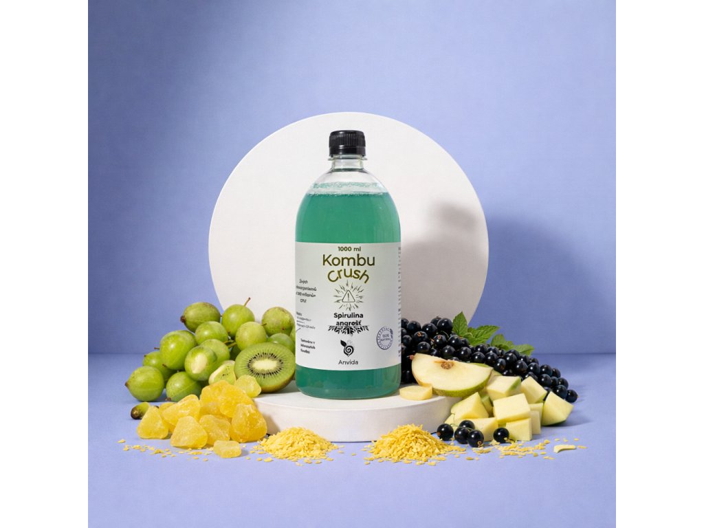 Kombucha, angrešt a modrá spirullina